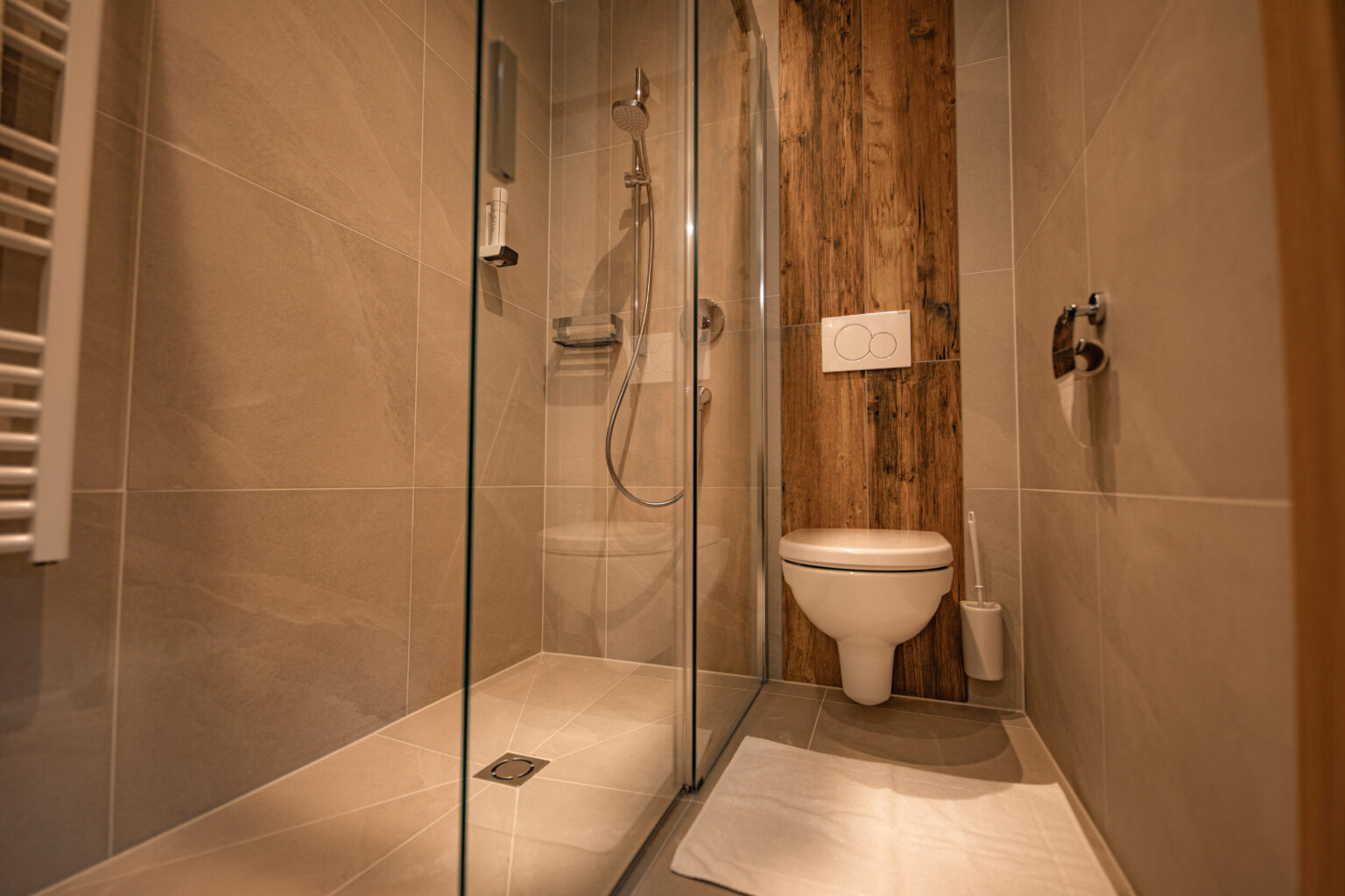 Ein echtes Highlight ist das neu renovierte Badezimmer mit Dusche, WC und Fußbodenheizung, die vor allem in den kühleren Monaten für besonderen Wohlfühlkomfort sorgt. Neben dem geschmackvollen Design profitieren Sie hier von modernen Details, die den Aufenthalt besonders angenehm machen.